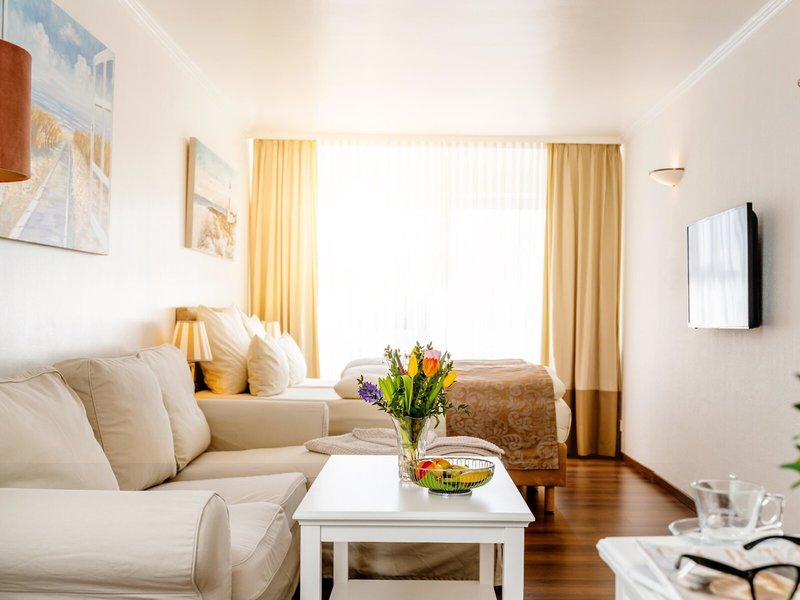 Poloha a okolie Hotel má centrálnu polohu av blízkosti pláže na pešej zóne. Kúpeľné centrum a "Sylter Welle" sú veľmi blízko. Na železničnú stanicu je to len cca 500 m.