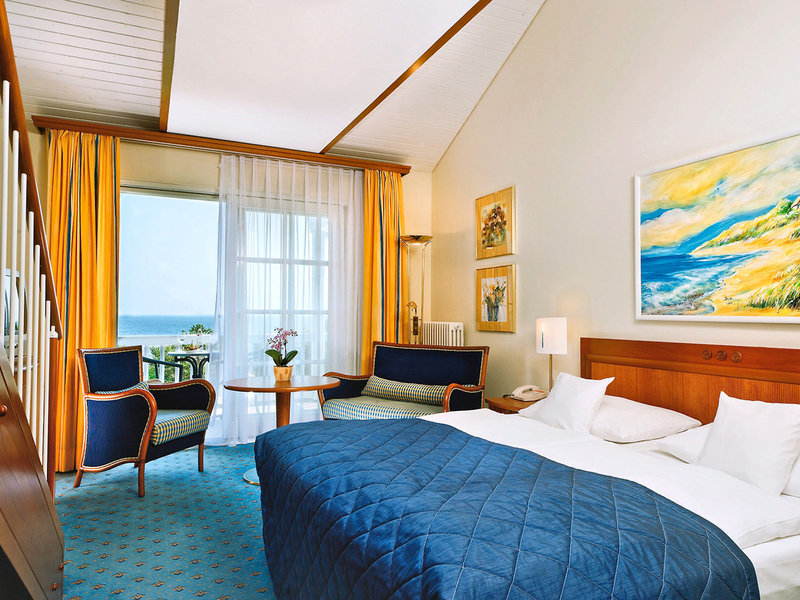 - Dvojlôžková izba morská strana (DZX1), dvojlôžková izba, nefajčiarska izba, morská strana, severná strana, výhľad na more, cca 25 m², celkový počet izieb v tomto type izby: 1, rozloženie: kombinovaná obývacia izba/spálňa. , 1 spálňa, kúrenie: centrálne ovládané, podlaha: koberec, trezor: bez poplatku, písací stôl, minibar: za poplatok, telefón, Internet: širokopásmový internet/DSL: bez poplatku, TV: plochá obrazovka, nemecký program, satelitná TV, izbová služba: denne, za poplatok, denná tlač: za poplatok, Jazyky: nemčina, vaňa alebo sprcha, WC, župan: zadarmo, papuče: zadarmo, fén, balkón alebo terasa: s posedením