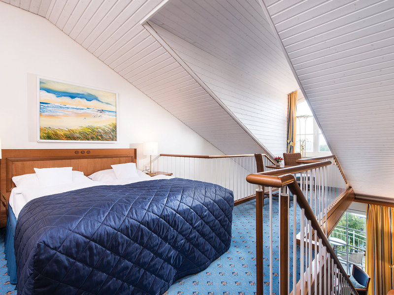 - Maisonette-Zimmer Seeseite (DZX2), Doppelzimmer, Meerseite, Nordseite, Meerblick, Gesamtanzahl der Räume in diesem Zimmertyp: 2, Aufteilung wie folgt: Maisonette, Heizung: zentral gesteuert, Fußboden: Teppichboden, Safe: ohne Gebühr, Sitzecke, Schreibtisch, Minibar: gegen Gebühr, Telefon, Internet: Breitband-Internet/DSL: ohne Gebühr, Fernseher: Flatscreen, deutsches Programm, Sat-TV, Roomservice: gegen Gebühr, Tageszeitung: gegen Gebühr, Sprachen: deutsch, Badewanne, WC, Bademantel: ohne Gebühr, Slipper: ohne Gebühr, Föhn, Kosmetikspiegel, Balkon: mit Sitzgelegenheit