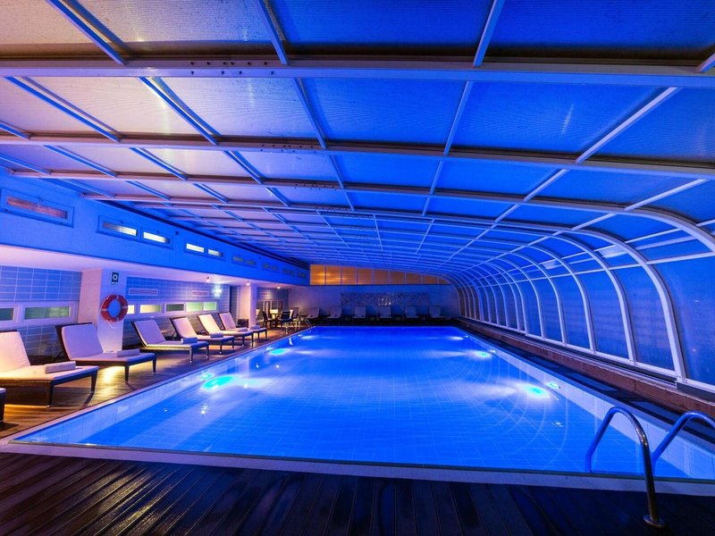 - Bazény: Vnútorný bazén, vonkajší bazén, slnečníky pri bazéne, ležadlá pri bazéne