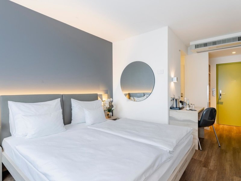 - Štandardná (DZX1), Dvojlôžková izba, Nefajčiarska izba, v hlavnej budove, cca 16 m², Celkový počet izieb v tomto type izby: 1, Rozloženie: 1 spálňa, 1 manželská posteľ (180x200cm), Klimatizácia: bezplatná, sezónna; závislá od počasia, individuálne ovládaná, Trezor: bezplatne, Písací stôl, Telefón, Internet: WLAN/WiFi: bezplatne, TV: nemecké kanály, Upratovanie: denne, bezplatne, Vaňa alebo sprchovací kút, WC, Župan: za zálohu, Fén, Kozmetické zrkadlo