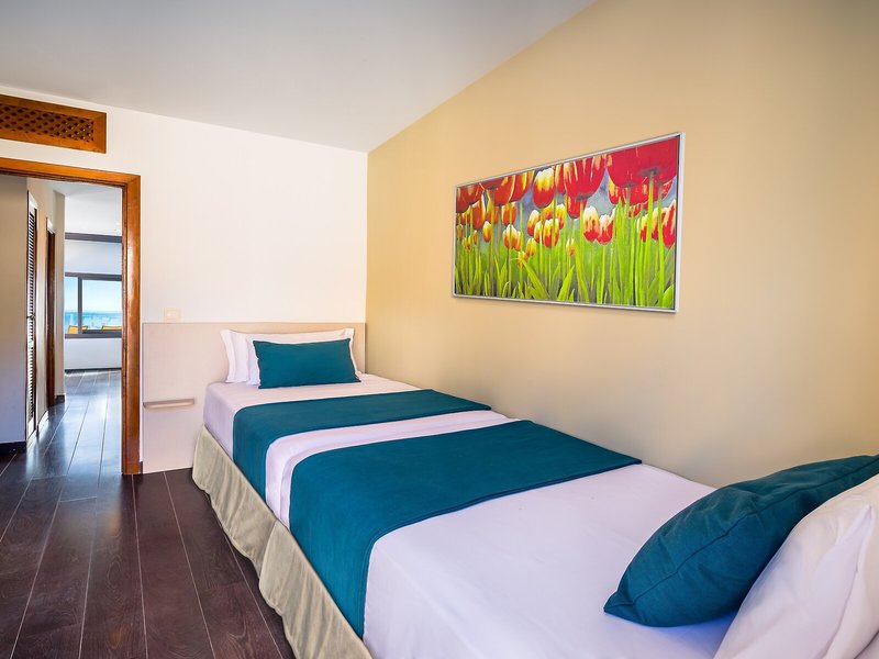 Ubytovanie: Klimatizácia a individuálne ovládané kúrenie zabezpečujú príjemnú vnútornú klímu v izbách. Vo väčšine ubytovacích jednotiek si hostia môžu vychutnať výhľad na more zo svojho balkóna alebo terasy. Izby majú manželskú posteľ alebo manželskú posteľ. Prístelky je možné vyžiadať. K dispozícii je aj trezor, minibar a písací stôl. K dispozícii je aj chladnička, mikrovlnná rúra a príslušenstvo na prípravu kávy/čaju. K dispozícii je aj práčka a žehliaca súprava. Telefón s priamou voľbou, TV so satelitným/káblovým príjmom, rádio a WiFi (bez poplatku) poskytujú najlepší dovolenkový komfort. Kúpeľňa je vybavená sprchovacím kútom, vaňou, sušičom vlasov a telefónom. Apartmánový hotel ponúka rodinné a nefajčiarske izby.
