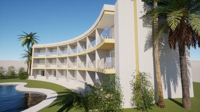 Vybavenie: Krásny komplex má celkom 117 apartmánov, rozdelených do šiestich blokov, s malou recepciou a minimarketom.