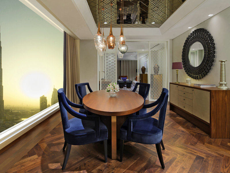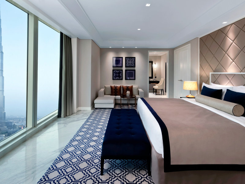 - Luxusná suita Burj View (SUX1), suita, v hlavnej budove, výhľad na Burj Khalifa, cca 115 m², celkový počet izieb v tomto type izby: 2, rozloženie: obývacia izba, 1 spálňa, 1 posteľ king , detská postieľka: na vyžiadanie nutná , klimatizácia: centrálne ovládaná, studená, teplá, podlaha: dlažba, koberec, trezor, pohovka, písací stôl, kuchynský kút, chladnička, varná doska, mikrovlnná rúra, umývačka riadu, kávovar Nespresso, kávovar/čajník, rýchlovarná kanvica, minibar: za poplatok, nealko nápoje: za poplatok, voda, alkoholické nápoje: za poplatok, občerstvenie: za poplatok, doplnenie minibaru, telefón, Internet: WLAN/WiFi: zadarmo, televízor: plochá obrazovka, v obývacej časti, v kúpeľni, v spálni, Deutsche Welle, izbová služba, služba komorníka, upratovacia služba, denná tlač, sprcha, samostatná sprcha, vaňa, WC, župan, papuče, sušič vlasov