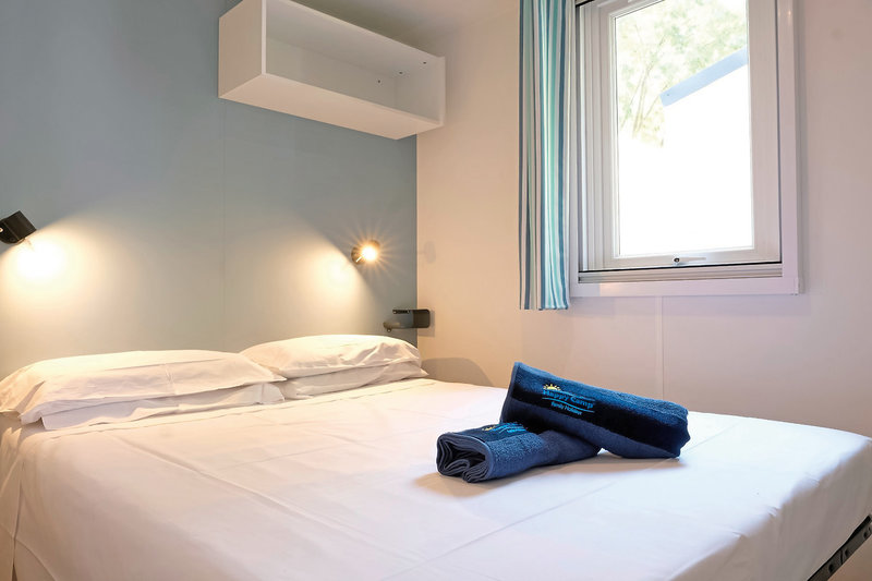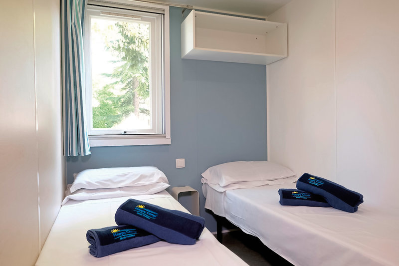 - 26-30 m², mobilný domček, nefajčiarsky, 3 samostatné spálne, obývacia izba/spacia časť, 4 samostatné postele, manželská posteľ, sprcha, WC, klimatizácia (za poplatok), kuchynský kút, jedálenský kút (lavica pre ďalšiu možnosť spania), veranda (zariadená, čiastočne krytá), 1 parkovacie miesto na jednotku, gril, posteľná bielizeň si možno prenajať na mieste (cca 20 EUR/balenie, nutná rezervácia vopred), uteráky si možno prenajať na mieste (cca 10 EUR/balenie, nutná rezervácia vopred), kuchynské utierky si treba priniesť so sebou, náklady na energie (bezplatne), záverečné upratovanie si hosť môže zabezpečiť sám alebo sa platí na mieste (cca 50 EUR/pobyt), kaucia (v hotovosti, cca 100 EUR/pobyt)