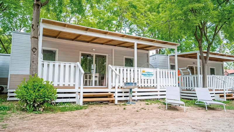 - 26-30 m², mobilný domček, nefajčiarsky, 3 samostatné spálne, obývacia izba/spacia časť, 4 samostatné postele, manželská posteľ, 2 kúpeľne, sprchovací kút, WC, klimatizácia (za poplatok), kuchynský kút, jedálenský kút (lavica pre ďalšiu možnosť spania), veranda (zariadená, krytá), 1 parkovacie miesto na jednotku, gril, posteľná bielizeň si možno prenajať na mieste (cca 20 EUR/balenie, nutná rezervácia vopred), uteráky si možno prenajať na mieste (cca 10 EUR/balenie, nutná rezervácia vopred), kuchynské utierky si treba priniesť so sebou, náklady na energie (bezplatne), záverečné upratovanie si hosť môže zabezpečiť sám alebo sa platí na mieste (cca 50 EUR/pobyt), kaucia (v hotovosti, cca 100 EUR/pobyt)