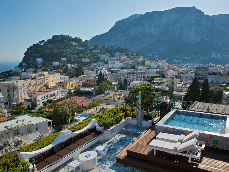 Lage & Umgebung Das stilvolle Hotel ist eine Mischung aus zeitgenössischem und Retro-Design und erinnert an La Dolce Vita. Hohe Servicqualität, die legère Atmosphäre kombiniert mit Liebe zum Detail bieten ein maßgeschneidertes Urlaubserlebnis. Das Restaurant Terrazza Tiberio bietet einen herrlichen Blick über Capri und das Meer und glänzt mit einer modern-schicken Atmosphäre. Die starke capresische und mediterrane Identität zeigt sich auf der Speisekarte. Neben der traditionellen Küche werden von der Orthodox Union zertifizierte Koschere Gerichte in einem reservierten Bereich serviert und bieten ein innovatives Menü, das koschere Regeln und typisch italienische Rezepte zum Dinner, Lunch und Schabbat vereint. Das Concierge-Team steht Gästen 24/7 zur Verfügung und organisiert maßgeschneiderte Sonderwünsche. Die berühmte Piazzetta von Capri mit Cafés und Restaurants ist in nur 5 Gehminuten zu erreichen.