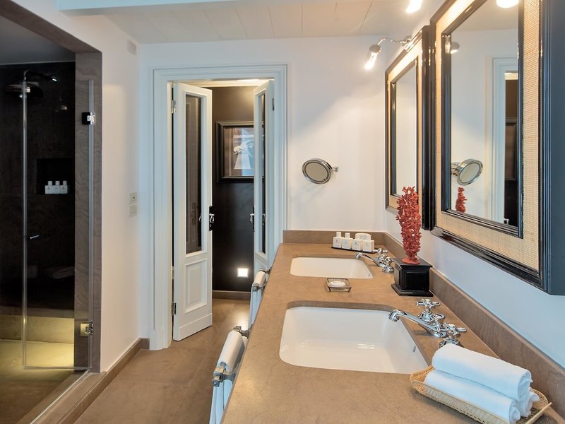 - Jednospálňová suita s výhľadom na more (SUM1), suita, v hlavnej budove, morská strana, výhľad na more, cca 65 - 75 m², posledná kompletná rekonštrukcia v roku 2016, posledná čiastočná rekonštrukcia v roku 2019, celkový počet izieb v tomto type izby: 6. , rozdelenie nasledovne: obývacia izba, 1 spálňa, 1 manželská posteľ (180x200cm), 1 rozkladacia pohovka (130x180cm), detská postieľka, klimatizácia: individuálna nastaviteľná, studená, teplá, podlaha: parkety, trezor, stropný ventilátor, sedenie, pohovka, písací stôl, minibar: nealko, voda, alkoholické nápoje, občerstvenie, doplnenie zásob minibaru, Internet: WLAN/WiFi, širokopásmový internet/DSL, televízia: plochá obrazovka, v obývacej časti, v spálni, nemecký program, satelitná TV, programy SKY, izbová služba, upratovacia služba, sprcha, dažďová sprcha, vaňa, WC, župan, papuče, sušič vlasov, Kozmetické zrkadlo, balkón: s ležadlami, s posedením, balkón alebo terasa: s ležadlami, s ležadlami, s posedením