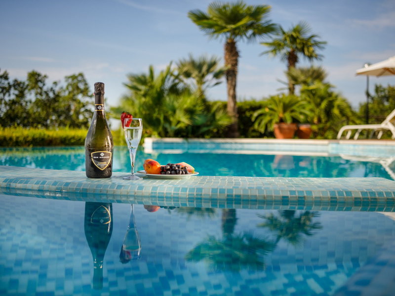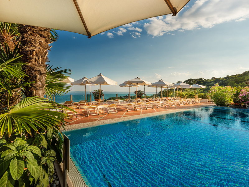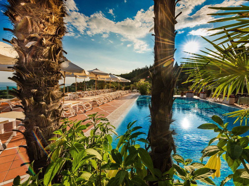 Lage & Umgebung Ca. 2 km von Garda entfernt, in einer erhöhten, ruhigen und einzigartigen Panoramalage, nahe dem kleinen Ort Marciaga. Zum Gardasee sind es ca. 3 km. Die Einfahrt zum 18-Loch-Golfplatz „Ca degli Ulivi“ befindet sich gegenüber dem Hotel.