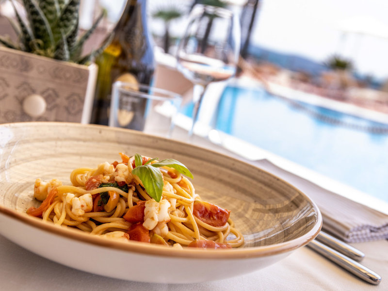- Restaurant „Pool Bistrot - La Terrazza“: Küche: italienisch, mediterran, regional, à la carte, gegen Gebühr, saisonabhängig, mit Terrasse, am Pool