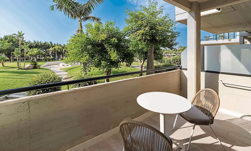 - 21-25 qm, Doppel, Deluxe, Landseite, Gartenblick, renoviert (2021), Nichtraucher, Schreibtisch, Dusche, WC, Haartrockner, Kosmetikspiegel, Klimaanlage, zentral gesteuert, ca. 15.6.-15.9., Minibar, Safe, TV (Sat-TV, deutschsprachiges Programm), WLAN, Wasserkocher, Kaffee/Tee, Balkon (möbliert), separater Check-in & Check-out, separater Strandbereich