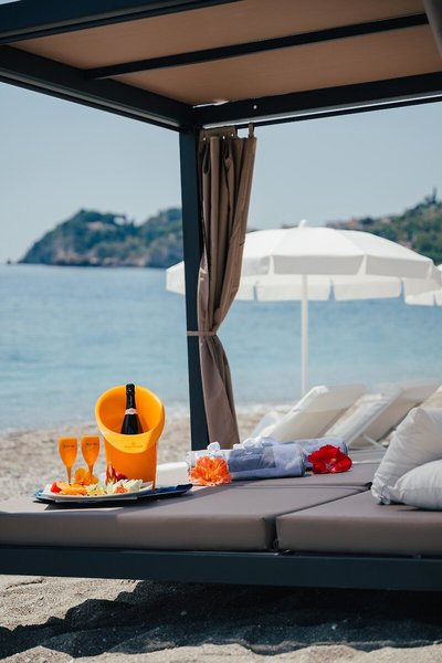 - Dvojlôžková izba s výhľadom na more typ 1 (DZM1), dvojlôžková izba, v hlavnej budove, výhľad na more, výhľad na Etnu + balkón, cca 22 m², posledná kompletná rekonštrukcia v roku 2015, celkový počet izieb v tomto type izby: 1, dispozičné riešenie nasledovne: 1 spálňa, 1 prístelka, detská postieľka: zadarmo, na vyžiadanie nutná, klimatizácia: zadarmo, jún - september, centrálne riadené, kúrenie: sezónne závislé, centrálne ovládané, podlaha: parkety, trezor: zadarmo poplatok, minibar: za poplatok, telefón, Internet: WLAN/WiFi: zadarmo, TV: plochá obrazovka, satelitná TV, vaňa alebo sprcha, WC, sušič vlasov, balkón