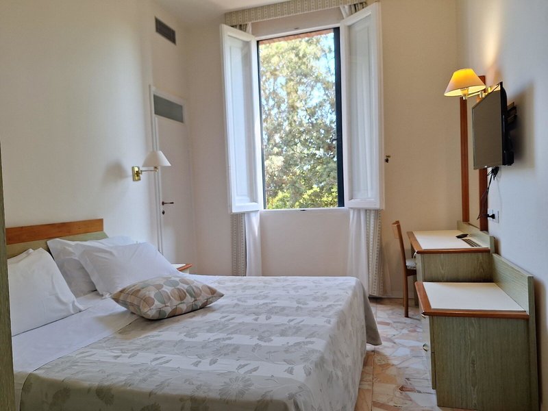 - Standard (DZX1), Doppelzimmer, Nichtraucherzimmer, im Hauptgebäude, Gartenblick, Gesamtanzahl der Räume in diesem Zimmertyp: 1, 1 Doppelbett, Fußboden: Fliesenboden, Safe: ohne Gebühr, Internet: WLAN/WiFi: ohne Gebühr, Fernseher: Flatscreen, Roomservice: gegen Gebühr, Badewanne oder Dusche