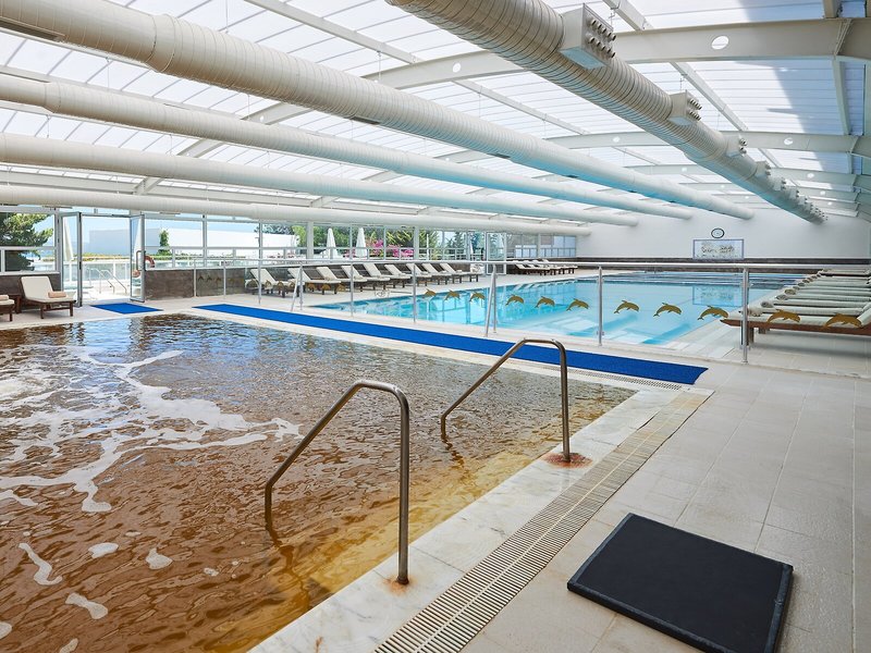 Sport & Fitness: Eine erfrischende Abkühlung bei heißem Wetter bieten 3 Außenpools, an trüben Tagen können die Gäste auch die 3 Hallenbäder nutzen (gegen Gebühr). Darüber hinaus gibt es einen Kinderbadebereich mit 2 Planschbecken. Ein Whirlpool lockt zur Muskelentspannung und eine Pool-/Snackbar zur Stärkung zwischendurch. Liegestühle und Schirme auf der Sonnenterrasse machen den Urlaub perfekt. Abwechslung bieten viele verschiedene Sportaktivitäten, die in der Unterbringung angeboten werden, wie z.B. Radfahren/Mountainbiking, Tennis, Basketball und Bogenschießen und gegen Gebühr Boccia und Beachvolleyball. Eine Vielzahl an Sportarten steht zur Verfügung, darunter Wassersportarten wie Wasserskifahren, Windsurfen, Jetskifahren, Tauchen und Wasseraerobic und gegen Gebühr Tretbootfahren, Bananenbootfahren, Segeln, Katamaranfahren und Schnorcheln. Der Komplex bietet eine Vielzahl an Möglichkeiten zur sportlichen Aktivität im Indoor-Bereich, wie etwa ein Fitnessstudio, Tischtennis, Billard, Gymnastik und Aerobic sowie gebührenpflichtig Darts. Im Feriendorf werden verschiedene Wellnessangebote wie Spa, Sauna, Dampfbad, Hammam, Schönheitssalon, Massage-Anwendungen und Solarium offeriert. Zu den weiteren Freizeitangeboten zählen ein Animationsprogramm, ein Miniclub, Live-Musik und eine Disco.