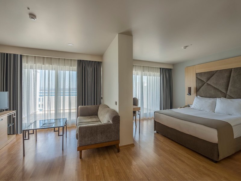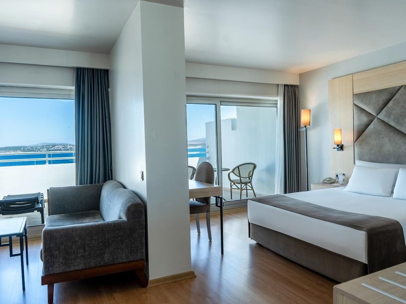 Vaše ubytovanie: Klimatizácia a kúrenie zabezpečujú príjemnú klímu v izbách. Väčšina ubytovacích jednotiek ponúka výhľad na more z balkóna alebo terasy. Izby sú vybavené manželskou posteľou a rozkladacou pohovkou. Prístelky je možné požiadať. K dispozícii je aj trezor, minibar a písací stôl. Štandardom je aj príslušenstvo na prípravu čaju/kávy. Pre pohodlie hostí je k dispozícii žehliaca súprava. Okrem toho je k dispozícii telefón s priamou voľbou, TV so satelitnými/káblovými programami, rádio a Wi-Fi pripojenie (bezplatné). K vybaveniu izieb patria papuče. Kúpeľne sú vybavené sprchovacím kútom a vaňou. K dispozícii je sušič vlasov, župany a telefón na každodenné použitie. Ako špeciálne vybavenie sú k dispozícii toaletné potreby a výber uterákov v kúpeľniach. K dispozícii sú aj bezbariérové izby s bezbariérovou kúpeľňou. Rodičia s deťmi majú k dispozícii rodinné izby.