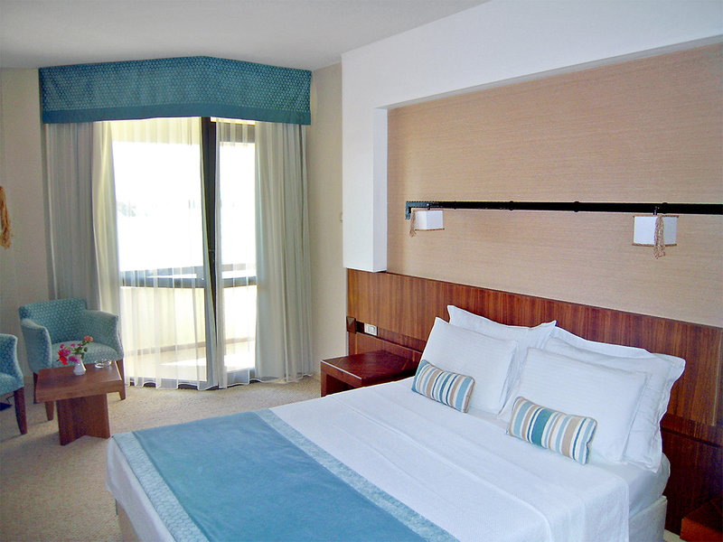 Ausstattung: Ferienhotel der guten Mittelklasse. Gartenanlage mit Swimmingpool, Sonnenterrasse, Liegen, Schirmen, Auflagen am Pool/Strand, Pool-/Snackbar. Rezeption, WLAN, Restaurant mit Terrasse. 3 Bars. Landeskat.: 4 Sterne, 105 Zimmer, 4 Etg, Lift.