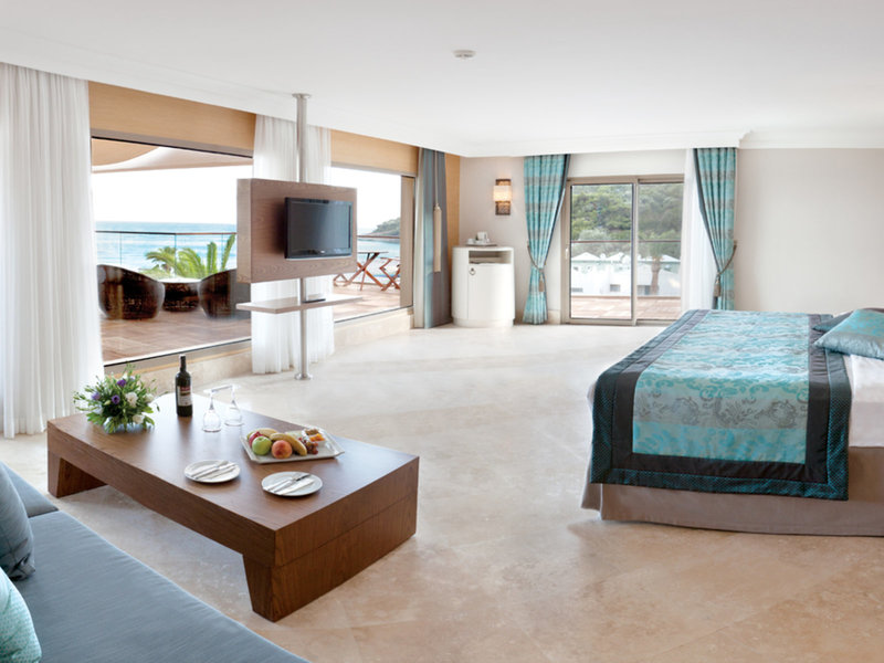 - Terrace Suite (SUM1), Suite, Nichtraucherzimmer, im Hauptgebäude, Meerblick, ca. 70 m², Gesamtanzahl der Räume in diesem Zimmertyp: 1, Aufteilung wie folgt: kombiniertes Wohn-/Schlafzimmer, 1 King Size Bett, Klimaanlage: ohne Gebühr, saisonabhängig; wetterabhängig, zentral gesteuert, kalt, warm, Fußboden: Fliesenboden, Safe: ohne Gebühr, Sitzecke, Kaffee-/Teezubereiter, Minibar: ohne Gebühr, Softdrinks: ohne Gebühr, Wasser: ohne Gebühr, Minibarauffüllung: täglich, Telefon, Internet: WLAN/WiFi: ohne Gebühr, Fernseher: Flatscreen, deutsches Programm, Sat-TV, Roomservice: 00:00 Uhr - 23:00 Uhr, gegen Gebühr, Dusche, WC, Bademantel: ohne Gebühr, Slipper: ohne Gebühr, Föhn, Terrasse: mit Liegen, mit Sitzgelegenheit, mit Whirlpool