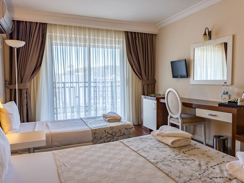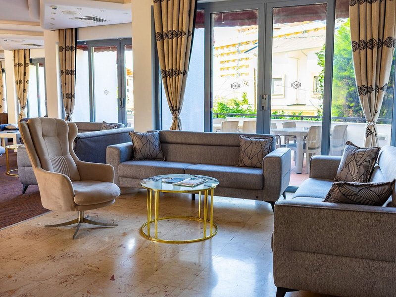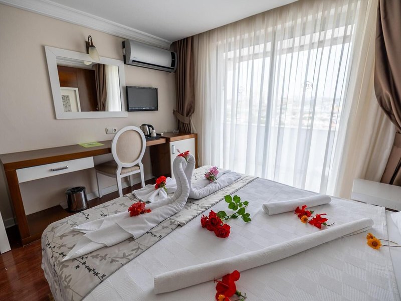 Poloha a okolie Tento hotel sa nachádza nie viac ako 50 metrov od piesočnatej pláže, v živej oblasti, priamo v centre Kusadasi. Odtiaľto máte niekoľko možností, ako stráviť voľný čas alebo začať malú túru za poznaním. Najbližšie letisko Izmir - Adnan Menderes Airport (ADB) je vzdialené približne 90 km.