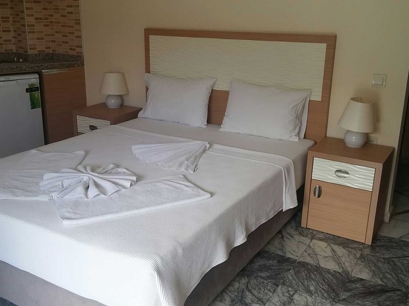 Lage & Umgebung Das Zentrum des Badeortes liegt ungefähr 800 m entfernt, der Strand ist etwas mehr als 1 km vom Hotel entfernt. Zu den Annehmlichkeiten im Ort zählen Restaurants, Bars und Geschäfte, die in weniger als 10 min zu Fuß von der Anlage aus erreichbar sind. In ca. 9 km Entfernung liegt die lebhafte Stadt Marmaris. Bis zum Flughafen Dalaman sind es etwa 105 km.