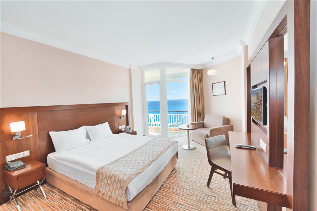2-lôžkové izby s možnosťou 1 - 2 prísteliek v areáli rezortu (v hlavnej hotelovej budove a v časti Park za príplatok) • izby s výhľadom na more za príplatok • klimatizácia • telefón • minibar (naplnený pri príchode - zdarma) • set na prípravu kávy a čaju • TV • trezor • kúpeľňa s vaňou, resp. sprchou a WC • sušič na vlasy • wifi • balkón s posedením