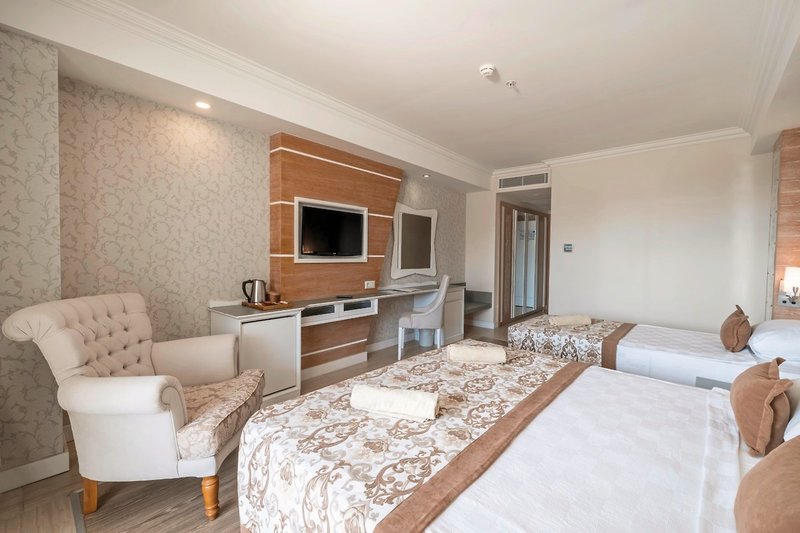 - 26-30 m2, dvojlôžková, hlavná budova, výhľad na more (bočný), nefajčiarske, samostatné lôžko, francúzska posteľ, sprcha, WC, fén, laminátová podlaha, klimatizácia, centrálne ovládané, minibar, pravidelne dopĺňaný, trezor, 1 TV (satelitná TV, plochá obrazovka), rýchlovarná kanvica, káva/čaj, balkón