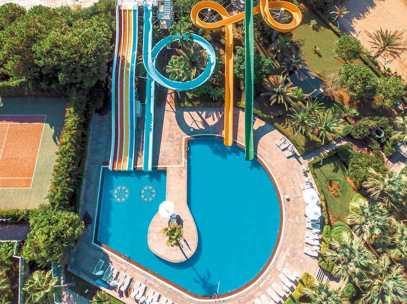 - 1 Pool: Süßwasser, Wasserrutschen (ca. 1.5.-31.10., stundenweise in Betrieb), Sonnenschirme, Liegen, Badetuch