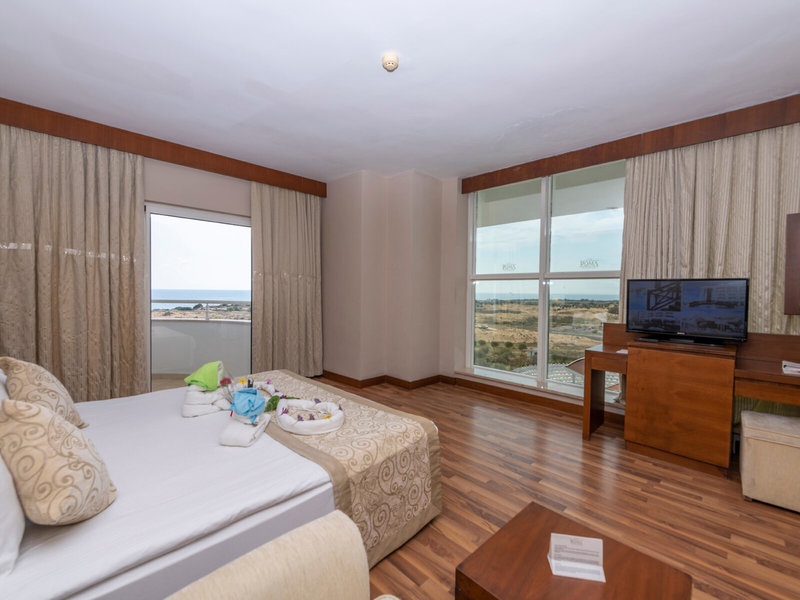 - Dvojlôžková izba s výhľadom na more (DZM1), dvojlôžková izba, minimálny vek v izbe: 16 rokov, výhľad na more, cca 26 m², celkový počet izieb v tomto type izby: 1, rozloženie: 1 spálňa, klimatizácia: zadarmo. za poplatok, centrálne ovládané, podlaha: laminátová, trezor: za poplatok, príslušenstvo na prípravu kávy/čaju, minibar: bez poplatku, nealko nápoje: bez poplatku, voda: bez poplatku, alkoholické nápoje: za poplatok, dopĺňanie minibaru: denne, telefón, Internet: WLAN/WiFi: za poplatok, TV, Izbová služba: za poplatok, upratovacia služba: bez poplatku, vaňa alebo sprcha, WC, fén, balkón