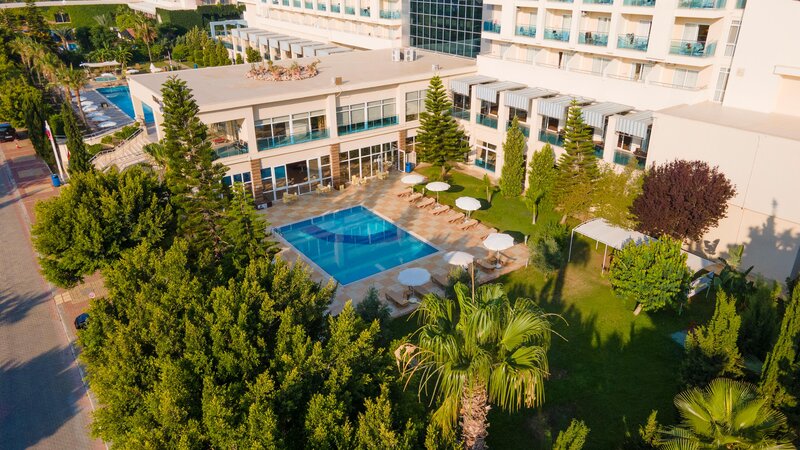 Vybavenie: 2 bazény, detský bazén, slnečná terasa, bar pri bazéne. Lehátka, slnečníky, plážové osušky, vankúše. Vonkajšie zariadenia sú k dispozícii v závislosti od počasia. Lobby, Wi-Fi vo verejných priestoroch, reštaurácia s terasou, 2 à la carte reštaurácie (rezervácia nutná, za príplatok; apríl – október), obchody, bar, kaderníctvo. Oficiálne hodnotenie: 5 hviezdičiek, 176 izieb, 6 poschodí, 2 výťahy.