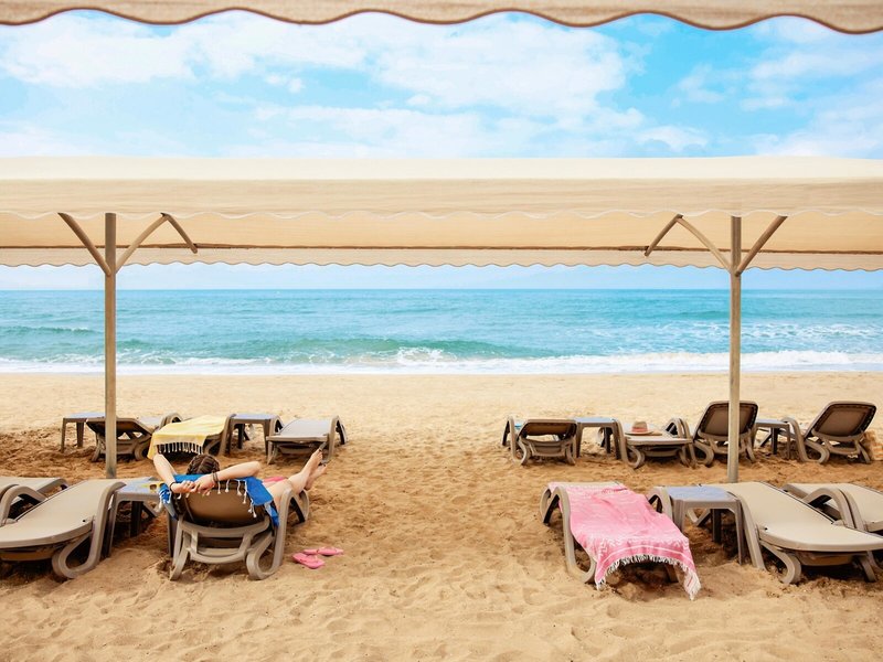 - Strand: Sand, flach abfallend, Liegen, Sonnenschirme