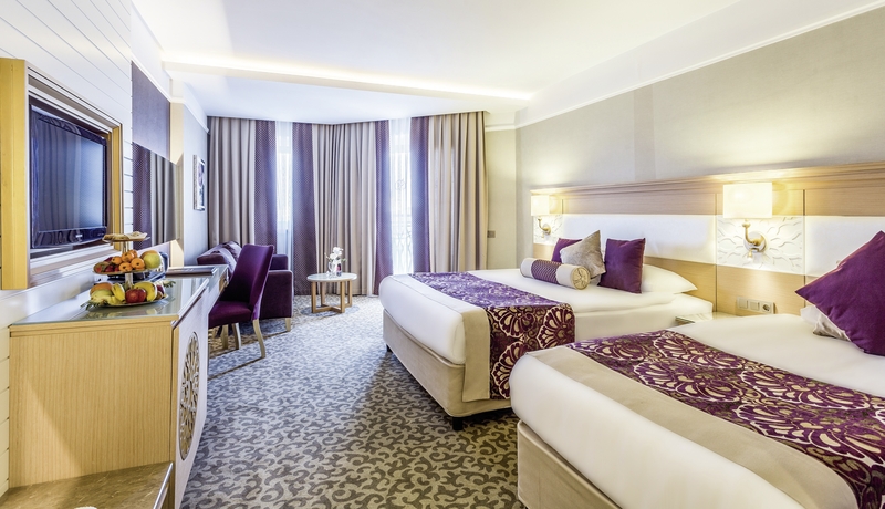 - 51-60 m², rodinná izba, s prepojovacími dverami, 2 samostatné spálne, 1 kúpeľňa, sprchovací kút, WC, fén, laminátová podlaha, klimatizácia, individuálne ovládaná, minibar, denne dopĺňaný, nealkoholické nápoje, minerálna voda, pivo, džúsy, voda, trezor, TV (satelitná TV), DVD prehrávač, Wi-Fi, rýchlovarná kanvica, káva/čaj, balkón